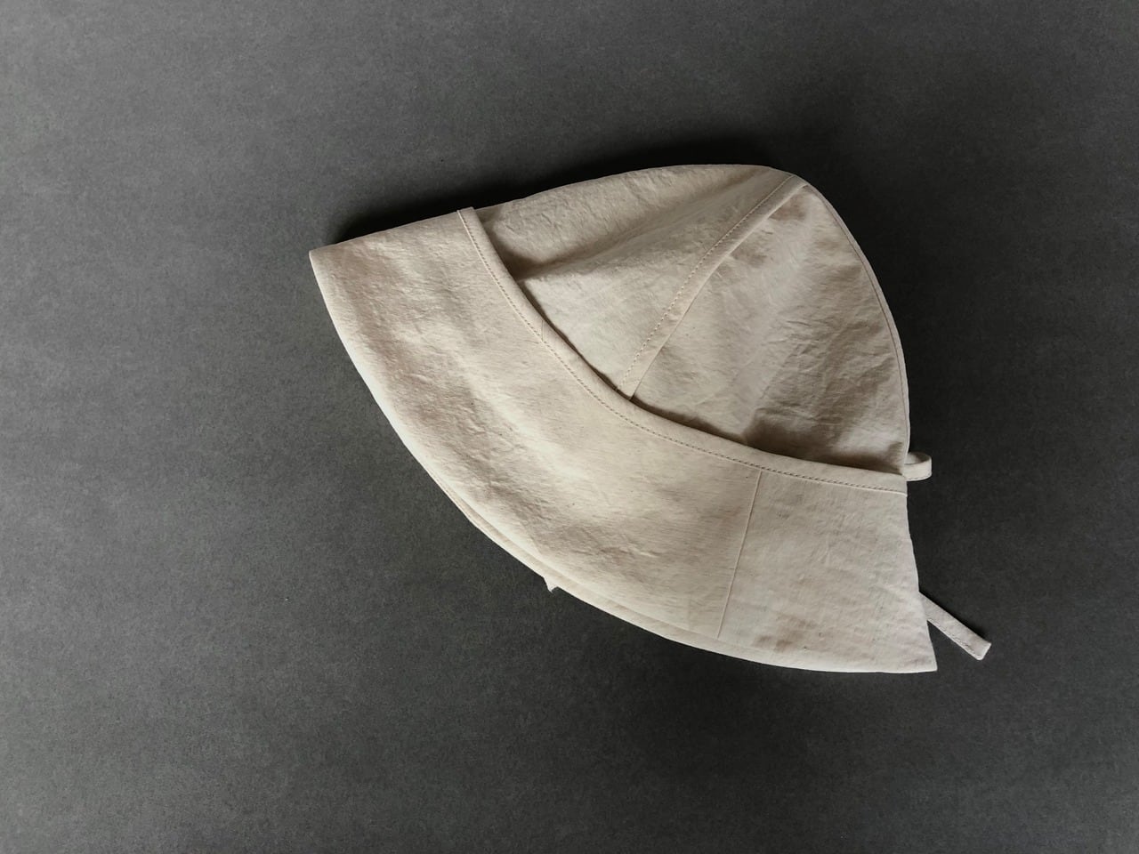 かばんの中にくしゃっとしまい込んでも、そのシワさえ愛おしく感じられるような、そんな散歩帽子です。