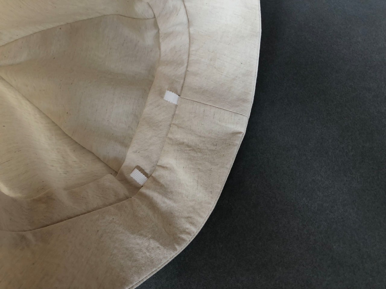帽子の内側には、お手持ちの紐やリボンを通せるループを4箇所つけました。