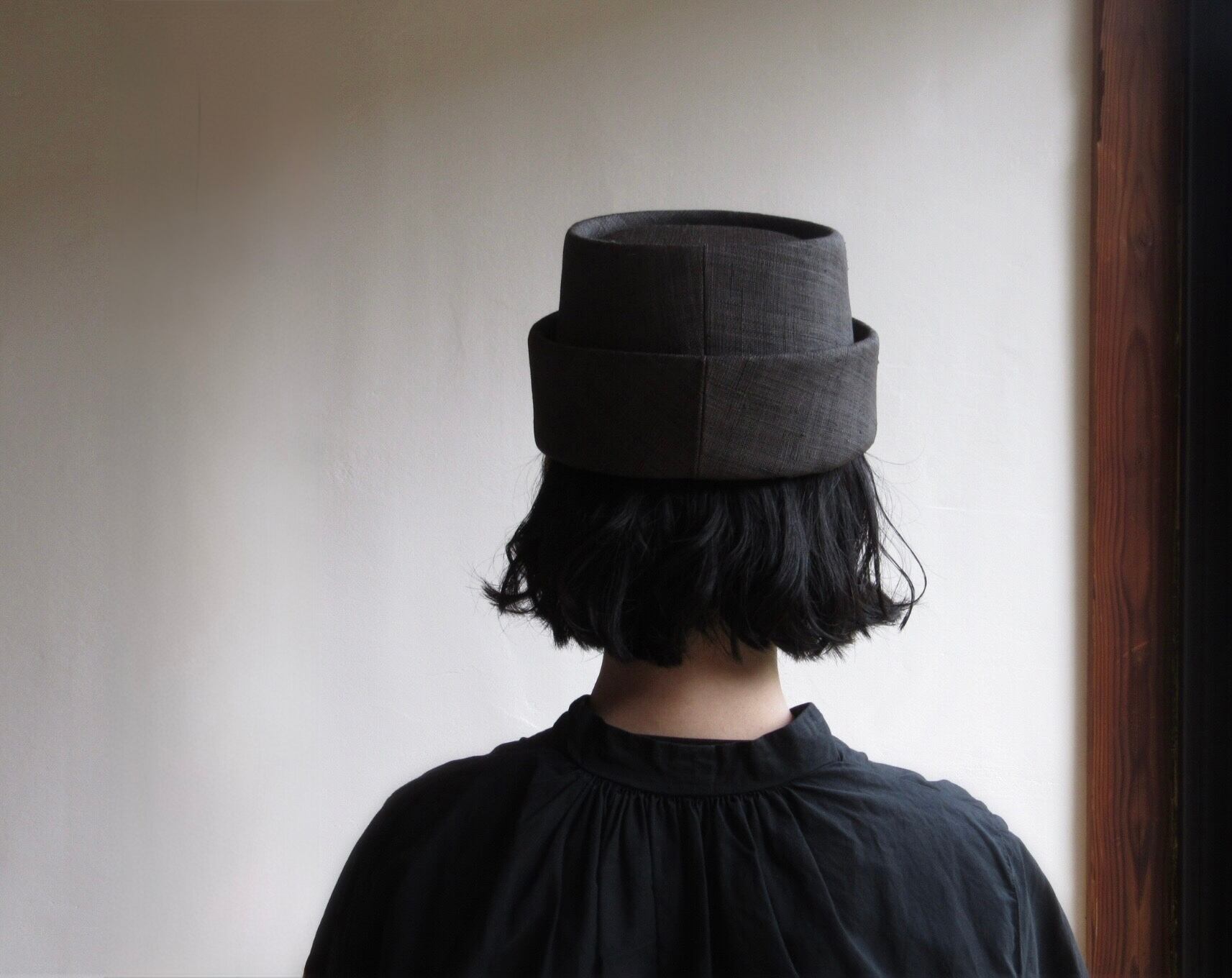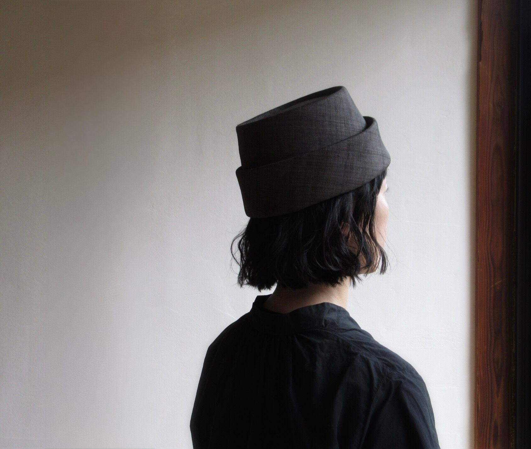 【受注商品】えん帽子/手織麻〈墨黒〉