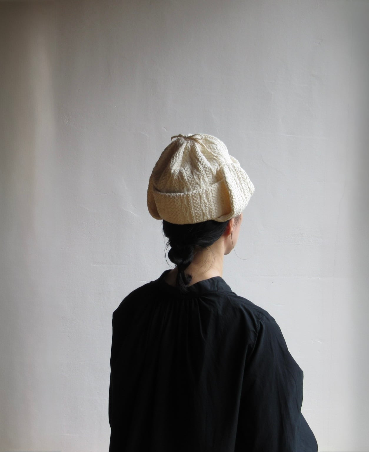 【受注商品】耳つきデキシー帽子 ジャガードアランニット/エクリュ