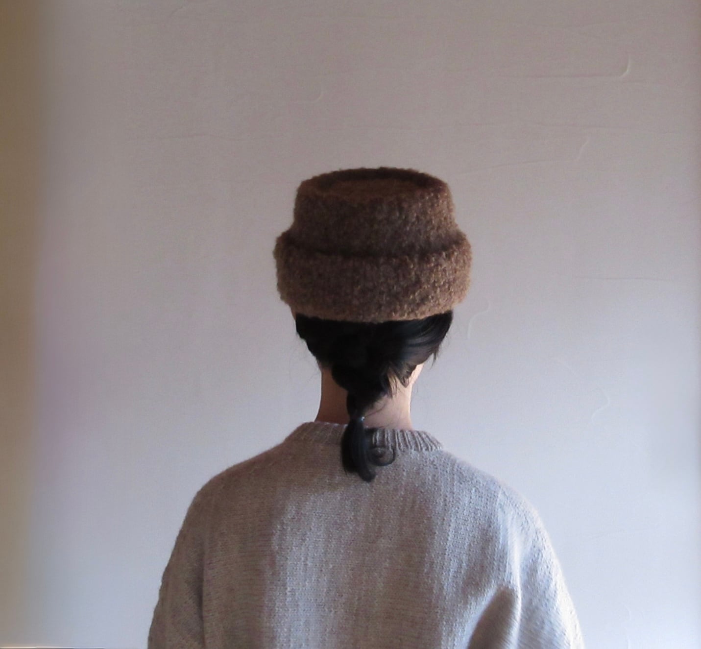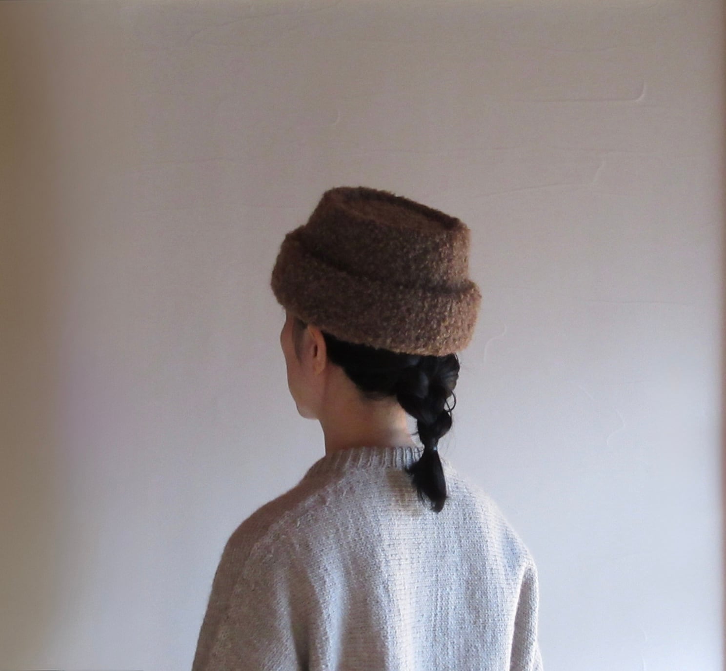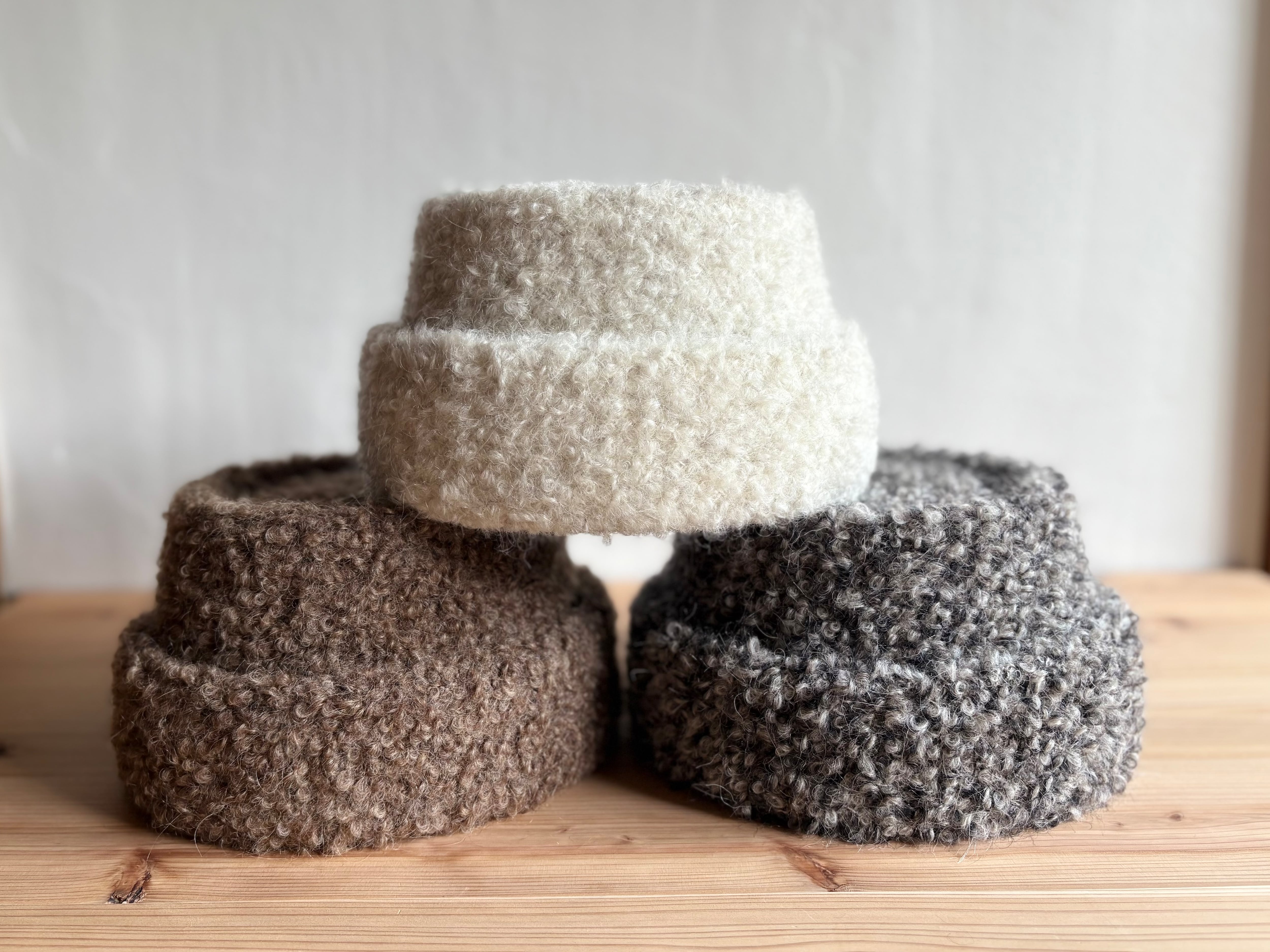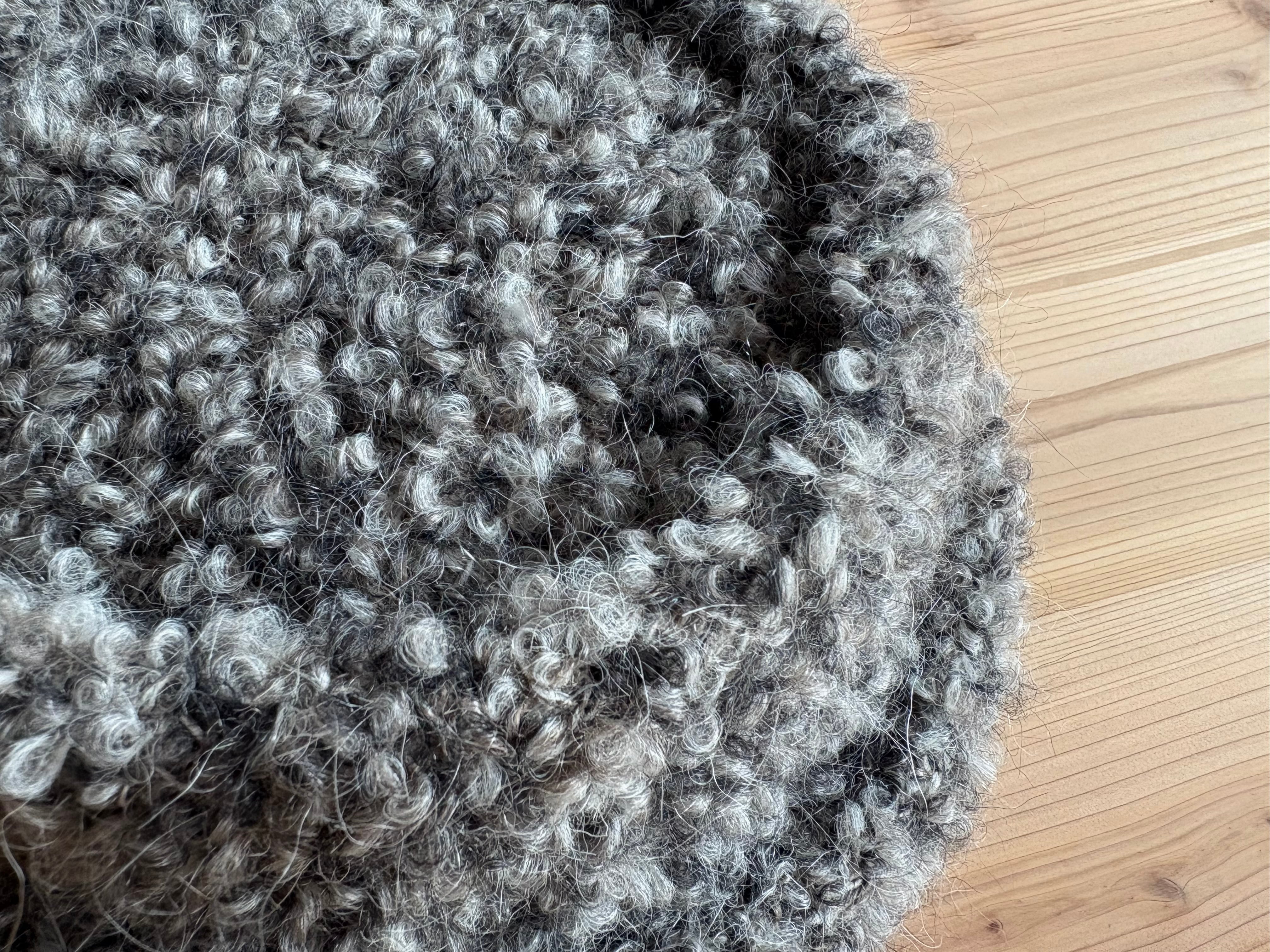 アルパカとモヘア混でとてもあたたかく、まるで羊そのもののような表情感とふくらみがある生地のため、ボリュームのあるシルエットです。