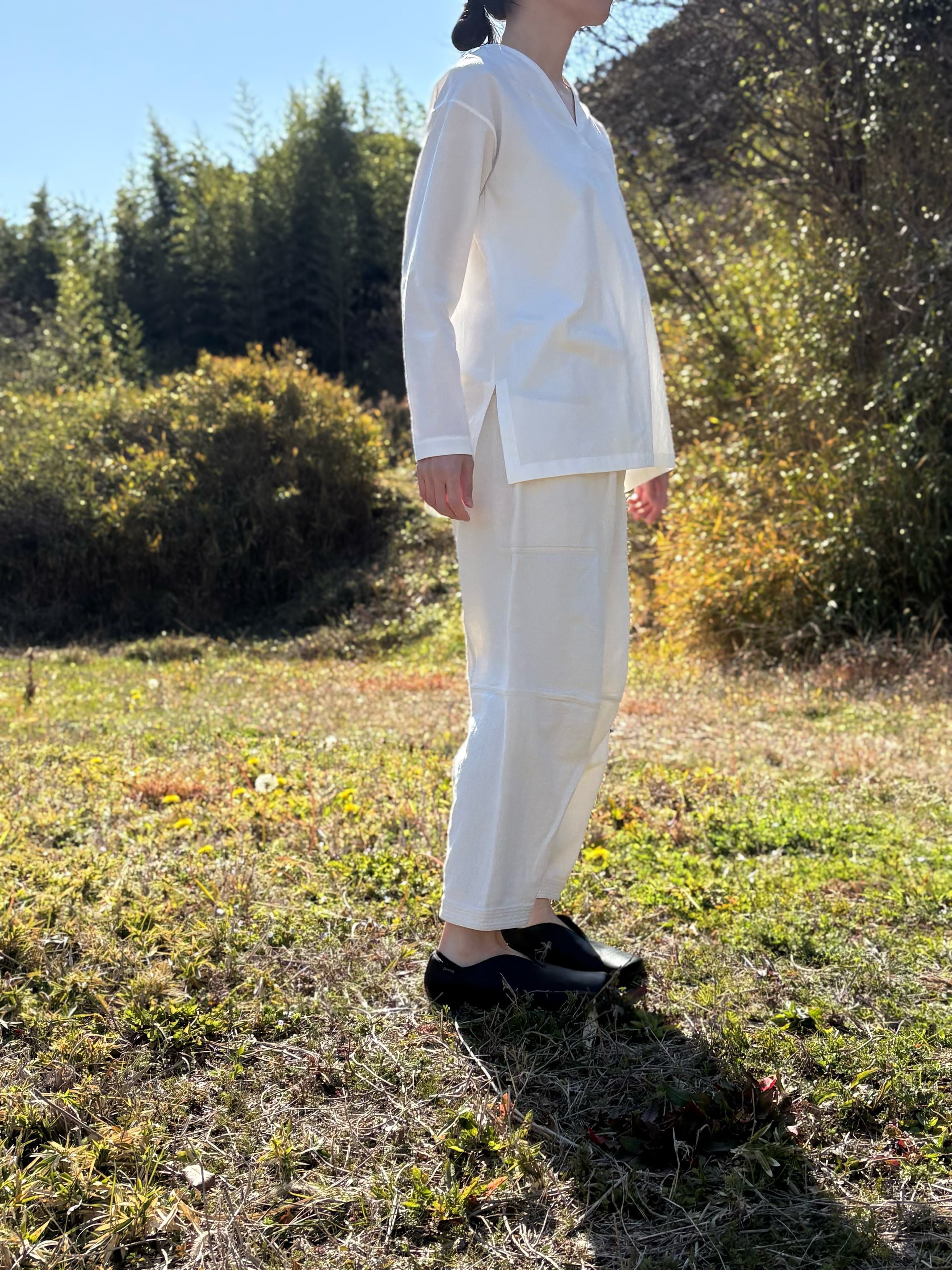 オフホワイトは淡色のため、光の当たり方や着用状況によってわずかに透け感が出る場合があります。