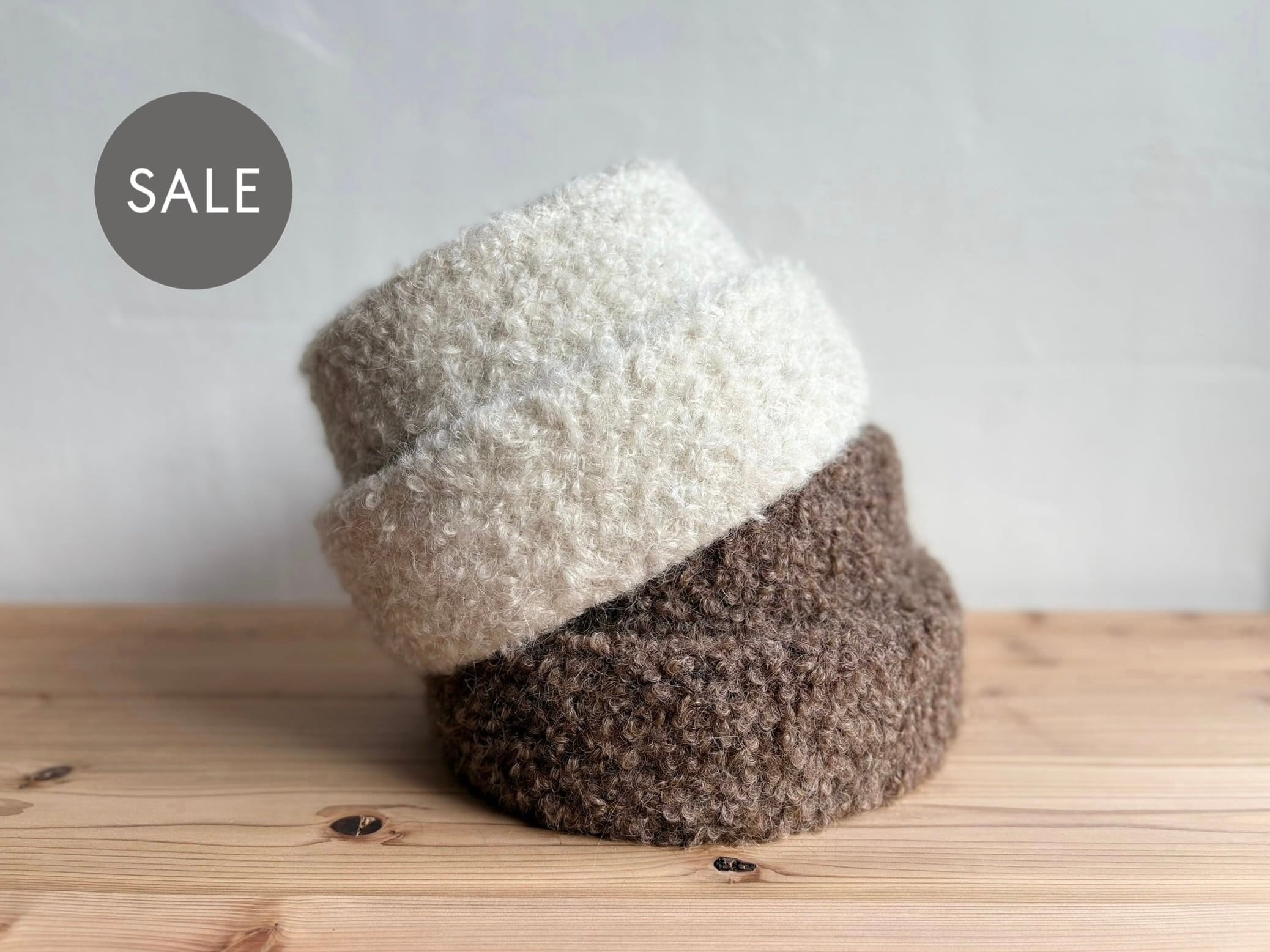 アルパカとモヘア混でとてもあたたかく、まるで羊そのもののような表情感とふくらみがある生地のため、ボリュームのあるシルエットです。