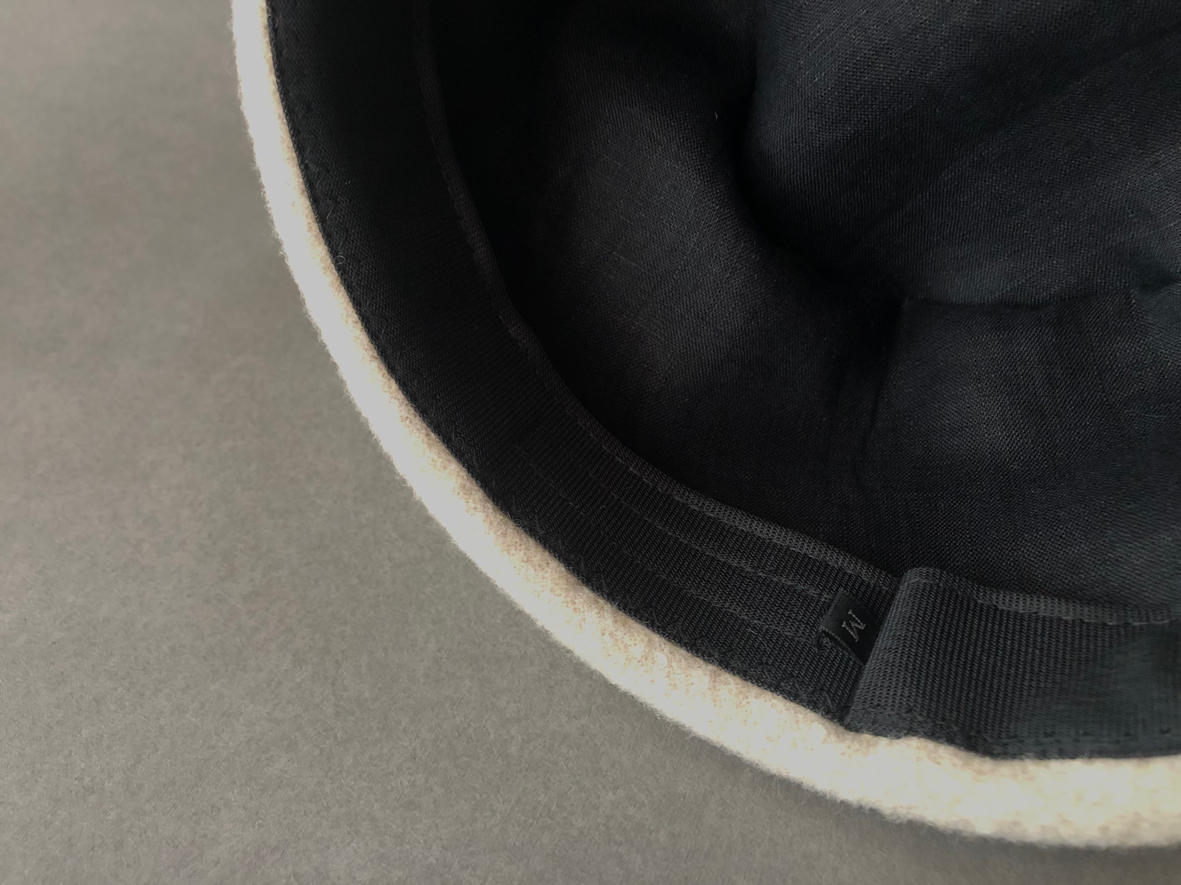 洗濯機は避け、帽子内側のサイズテープの汚れが気になる場合は、水で濡らした布を固く絞り叩くように付近を拭きとり陰干しして下さい。