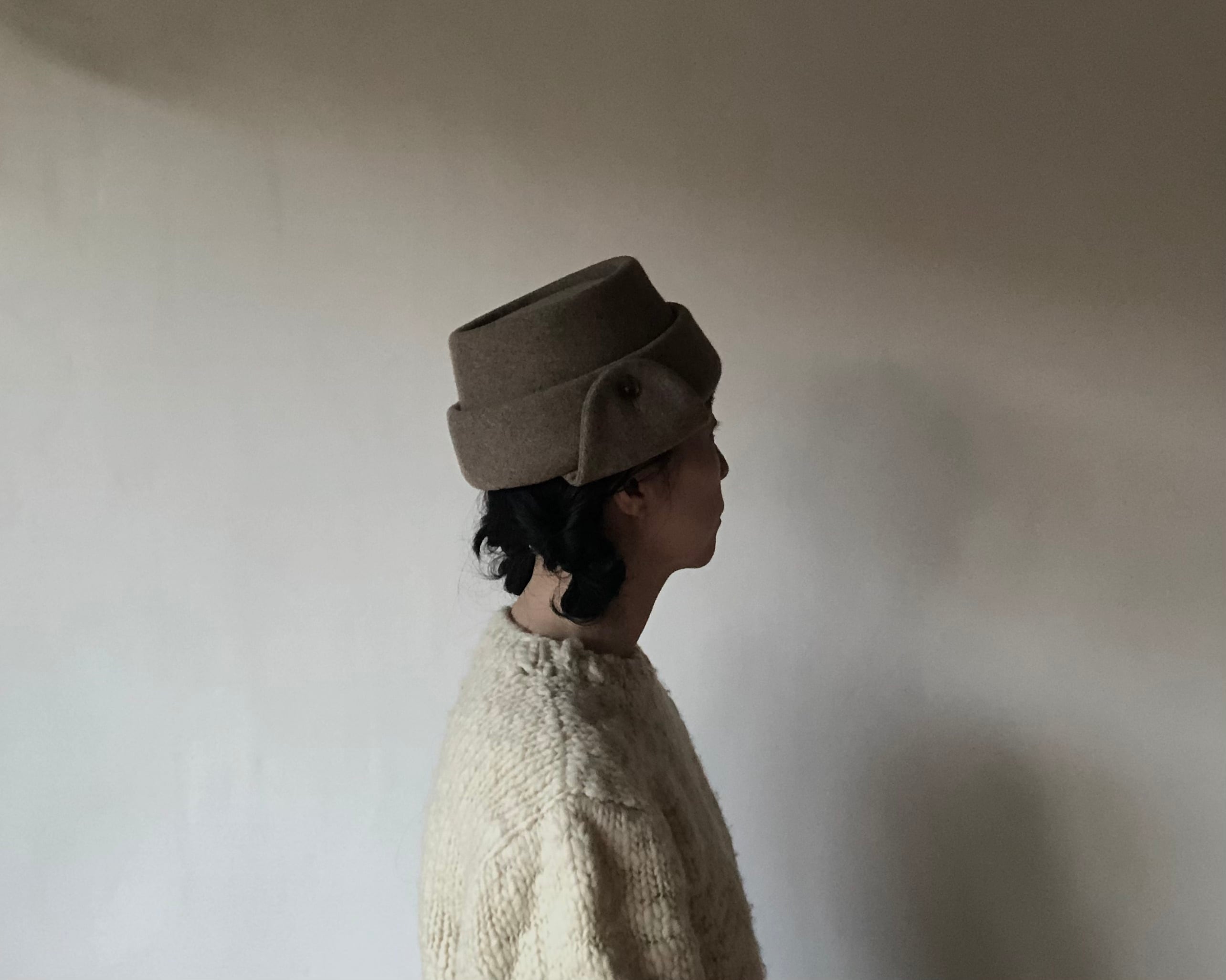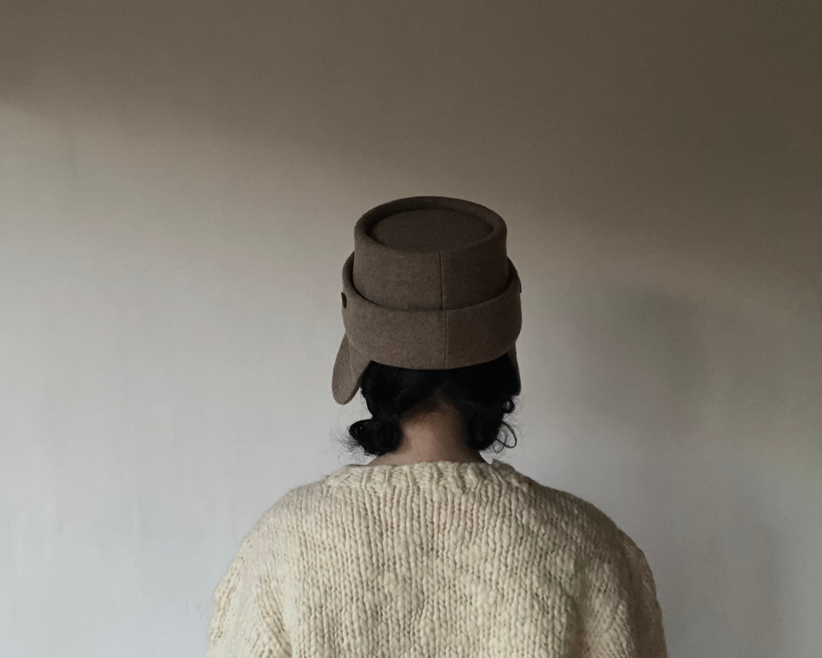 【受注商品】耳つきえん帽子 メルトン生地/モカベージュ