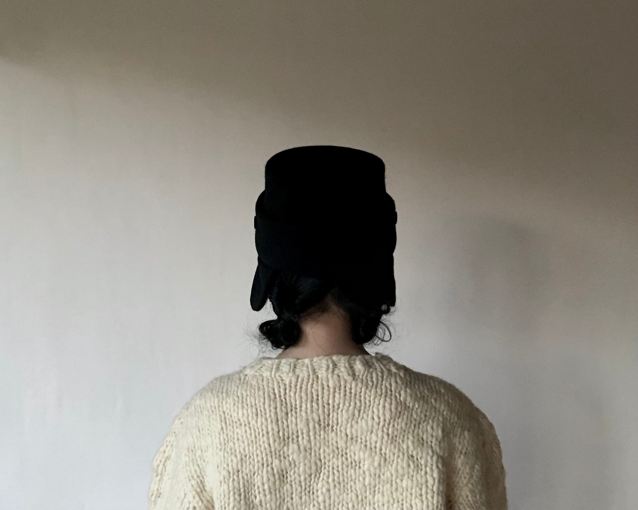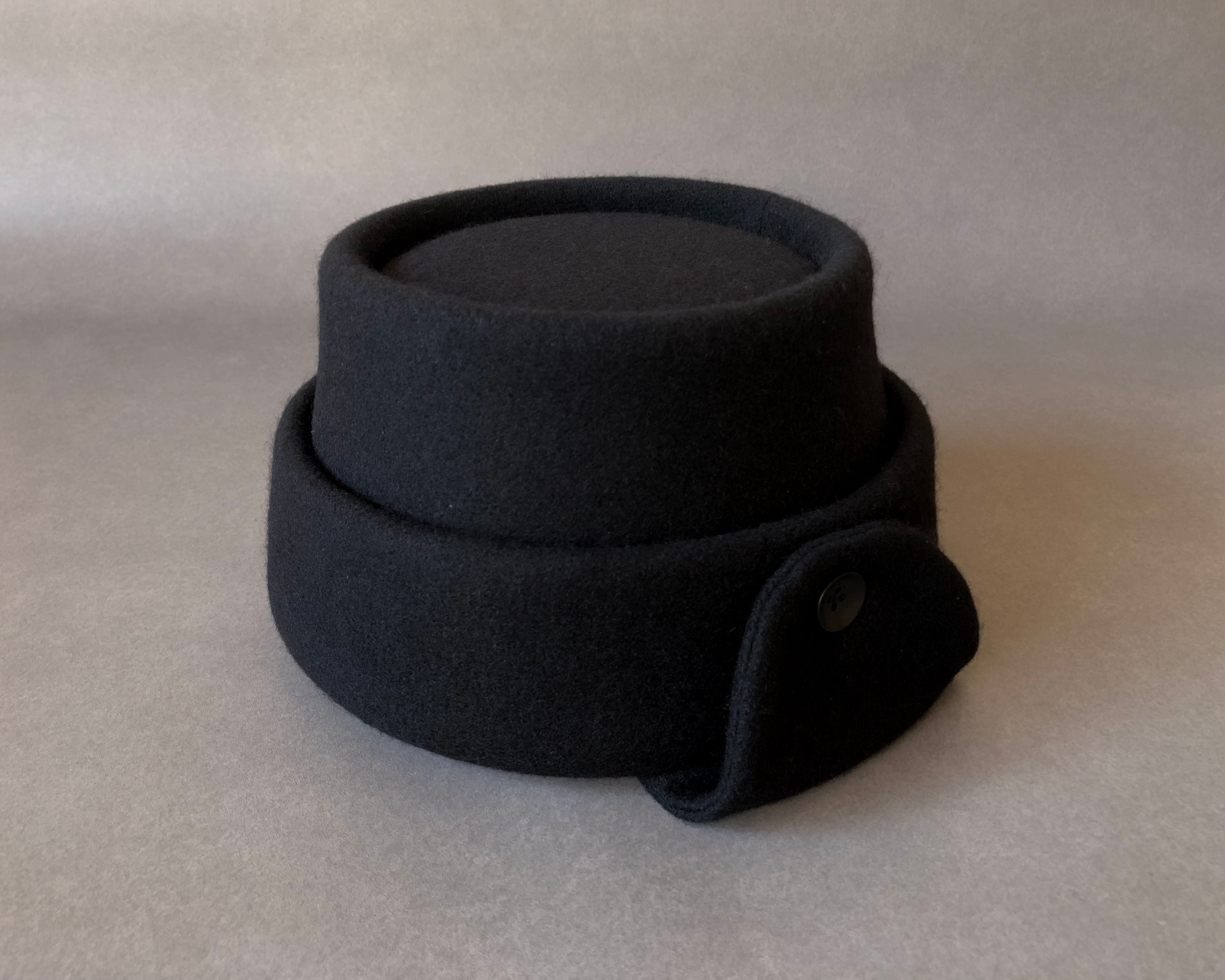 【受注商品】耳つきえん帽子 メルトン生地/ブラック